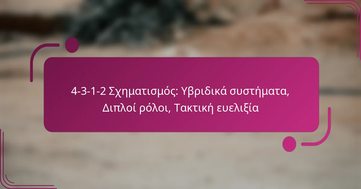 Η διάταξη 4-3-1-2 είναι μια τακτική ρύθμιση στο ποδόσφαιρο που τονίζει την ισχυρή παρουσία στο κέντρο του γηπέδου, διατηρώντας παράλληλα μια συμπαγή άμυνα και μια προσέγγιση με διπλούς επιθετικούς. Ενσωματώνοντας υβριδικά συστήματα, αυτή η διάταξη επιτρέπει στους παίκτες να αναλαμβάνουν διπλούς ρόλους, ενισχύοντας τόσο τις επιθετικές όσο και τις αμυντικές ικανότητες. Αυτή η τακτική ευελιξία επιτρέπει στις ομάδες να προσαρμόζονται ομαλά σε διάφορες καταστάσεις αγώνα, μεγιστοποιώντας την αποτελεσματικότητά τους στο γήπεδο.