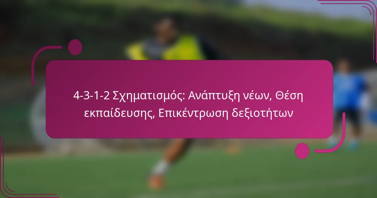 Η αποτελεσματική εκπαίδευση θέσεων για τη διάταξη 4-3-1-2 επικεντρώνεται στην ενίσχυση της κατανόησης των ρόλων και των ευθυνών των παικτών στο γήπεδο. Αυτή η διάταξη δίνει έμφαση στον έλεγχο της μεσαίας γραμμής, στη σταθερή αμυντική οργάνωση και στις δυναμικές επιθετικές κινήσεις, καθιστώντας τις στοχευμένες ασκήσεις απαραίτητες για την ανάπτυξη των παικτών.